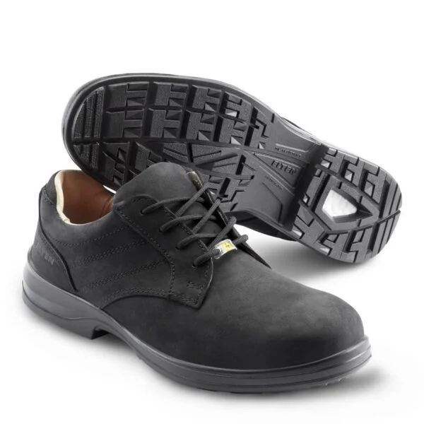 Vernesko Manager XXB Low. Vernesko av slitesterkt, pustende og vannavstøtende nubuck lær. Yttersålen er sklihemmende, lett, fleksibel og slitesterk. Sålekjernen er av INFINERGY®-materiale som demper støt og sender energien i retur til føttene, slik at hvert skritt lades med ny, lett og raskt energi. Innerfôr av lær og en innleggssåle av støtdempende, pustende og svetteabsorberende materiale. ESD-godkjent