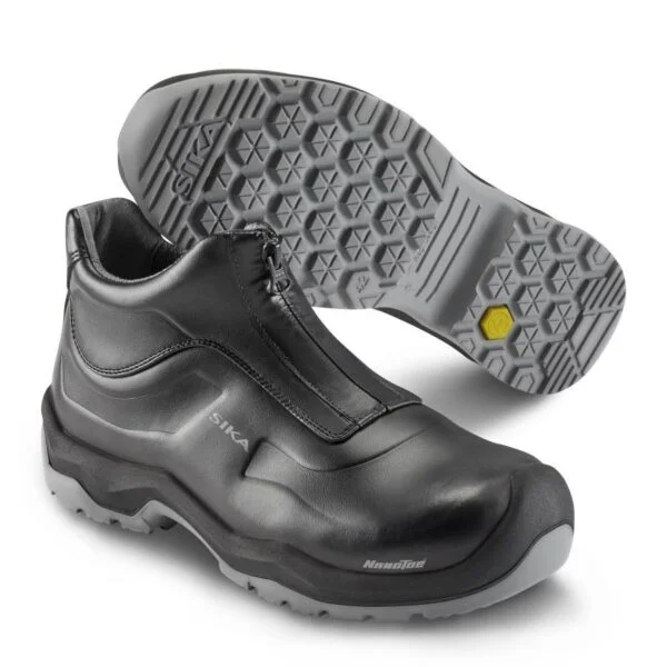 Ekstra sklihemmende og rengjøringsvennlig støvlett med glidelås, elastikk over vristen og Nanotoe™. Yttersålen har solid stigegrep og stabiliserende gelenk som motvirker vridning og fordeler trykket til hele sålen. Gelputen i hælen gir ekstra god støtdemping og fjæring. Støvletten er av pustende, slitesterkt og vannavstøtende Permair®-lær, og fôret er av svettetransporterende og hurtigtørkende Sympatex Moisture-Tech®, med ekstra forsterkning i hælen. Pustende, vaskbar og antibakteriell innleggssåle med ekstra mykt og trykkavlastende memory foam fra hæl til forfot. Ekstra tåforsterkning, metallfri, ESD-godkjent og PVC-fri. Med lett, tynn og sterk tåbeskyttelse av glassfiber som er forsterket med karbonnanorør.